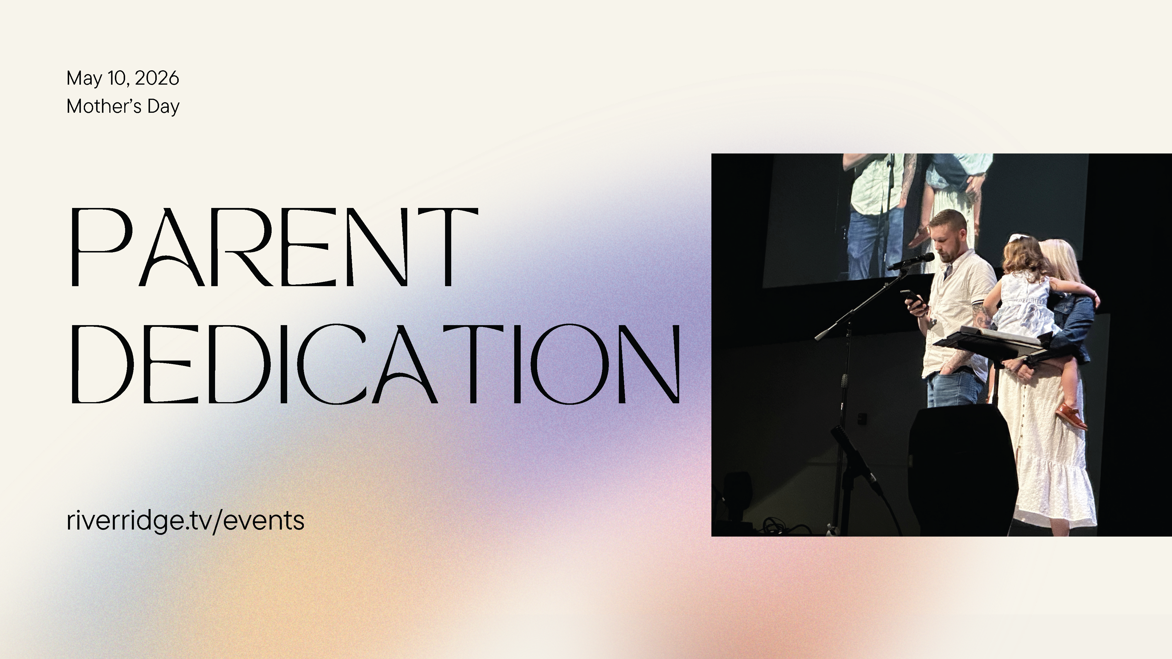 Parent Dedication is an intentional step for parents to gather their closest friends and family members for a meaningful time of dedicating themselves and their children to the Lord. Parent Dedication will be offered on Sunday, May 10th at 12:45 pm at River Ridge Church. Parents must register and complete an online orientation by Sunday, May 3rd.